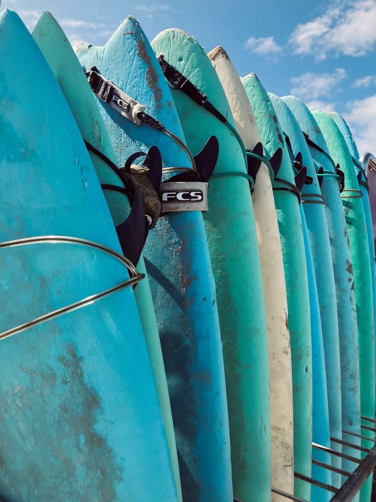 Board Rentals Discover the waves of Cape Three Points, Ghana — home to some of West Africa’s most consistent beach breaks. At Loshe Surf School, we offer a great selection of surfboards for all levels, from soft-tops for beginners to performance boards for experienced riders. Whether you’re here for a quick surf session or an extended stay, we’ve got you covered. Enjoy warm tropical waters, uncrowded beaches, and the relaxed rhythm of life by the ocean. Our friendly team will help you choose the right board and share local surf tips to make the most of your session. All rentals include leash, wax and rash vest.